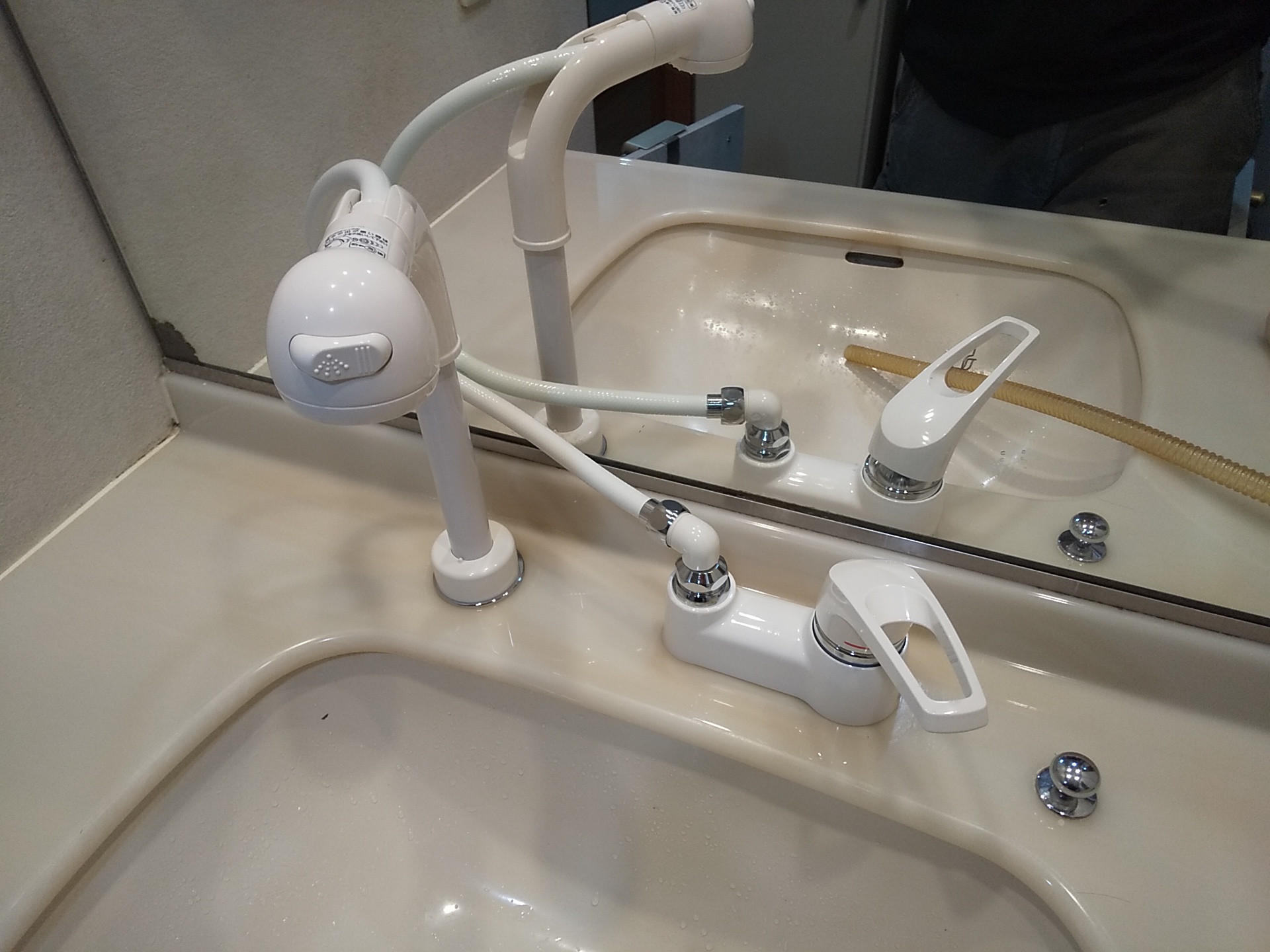 メモ 洗面水栓の経年劣化によりレバーが破損し 水漏れが発生した為、交換工事を行った。 ※施主支給