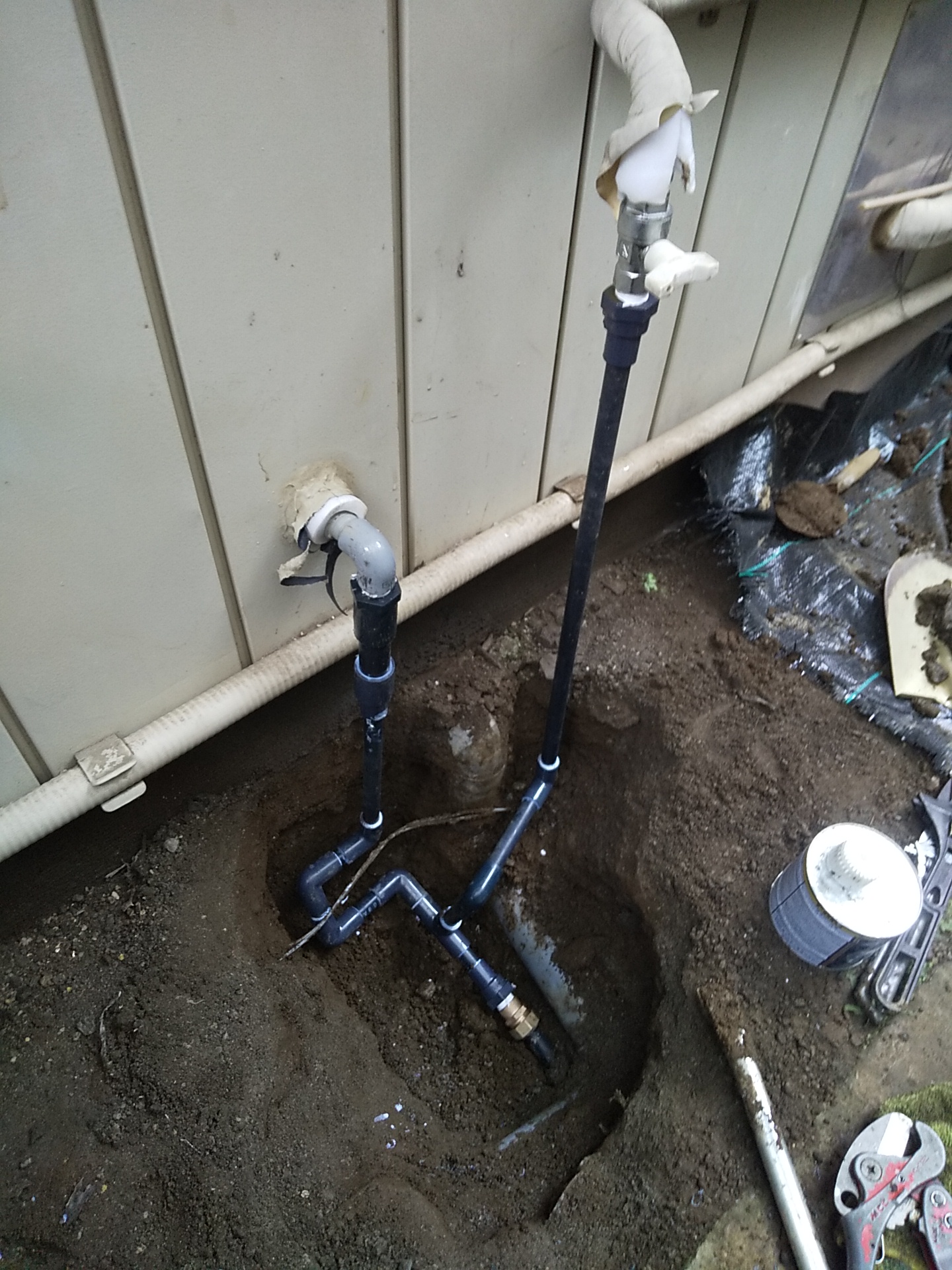 メモ 戸建て外側で給水管の経年劣化による 水漏れが発生した為、修繕工事を行った。