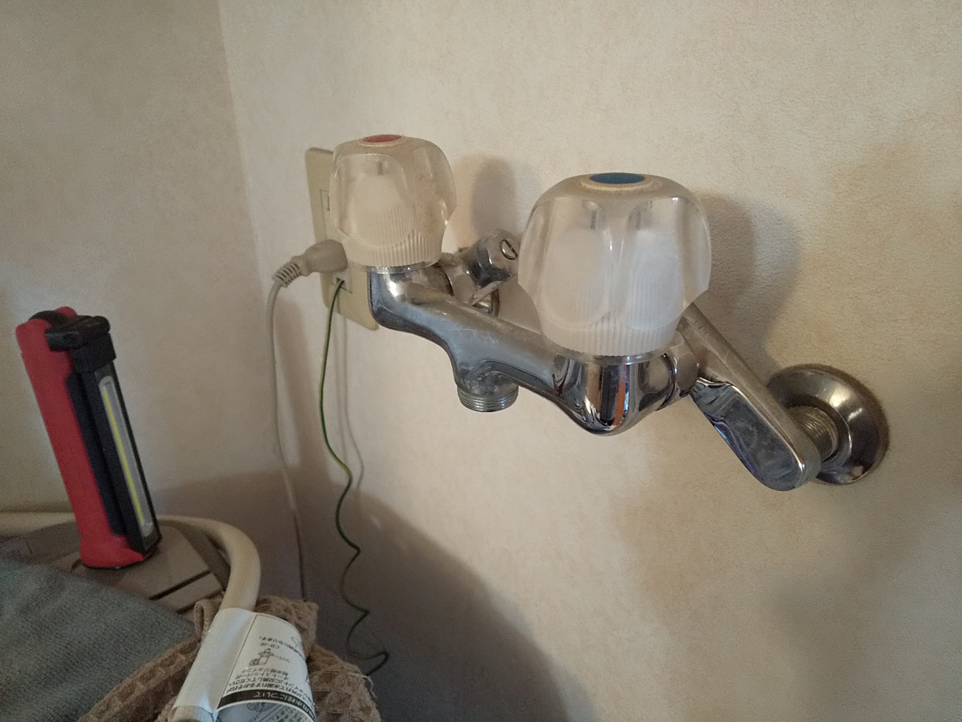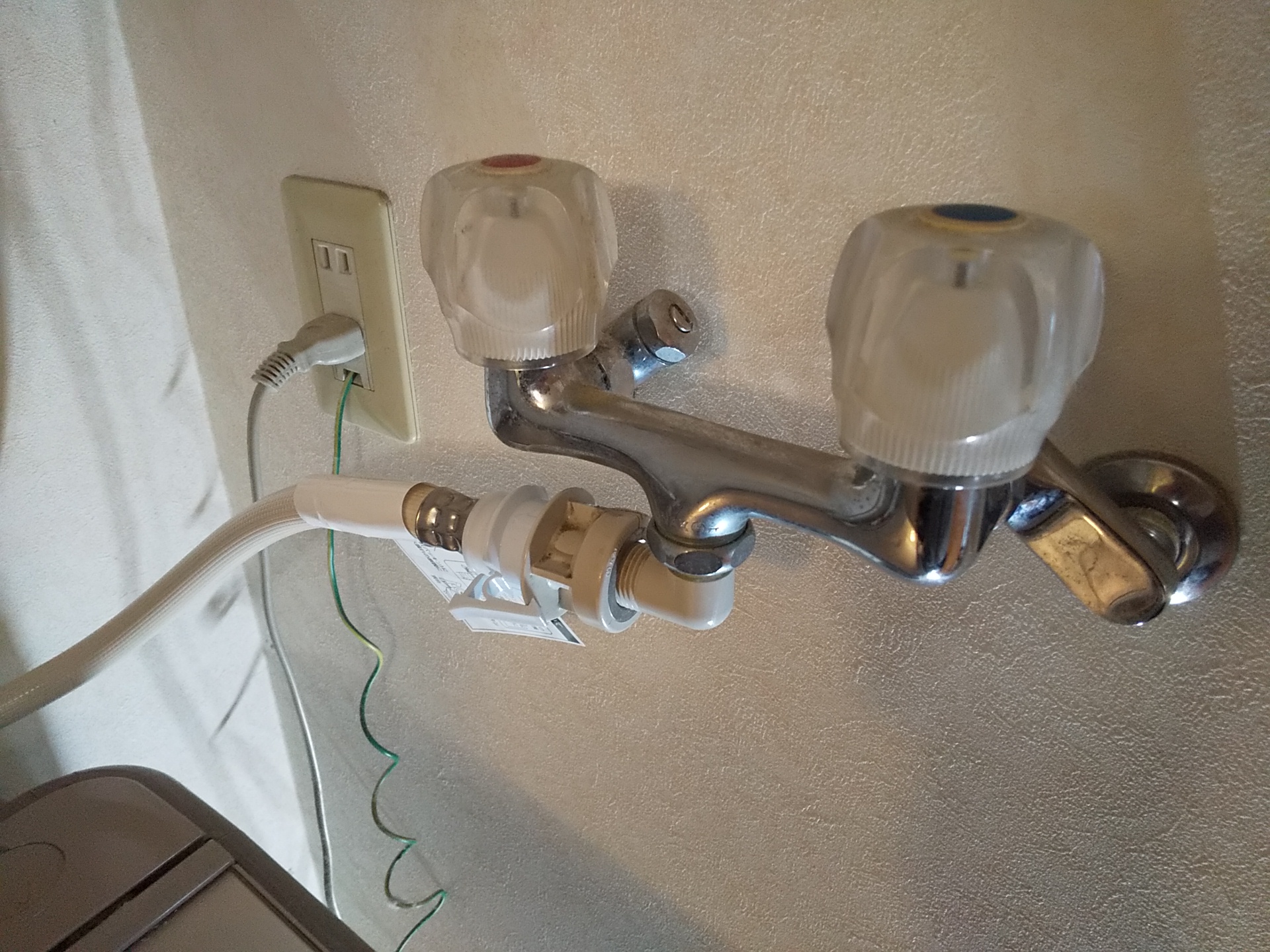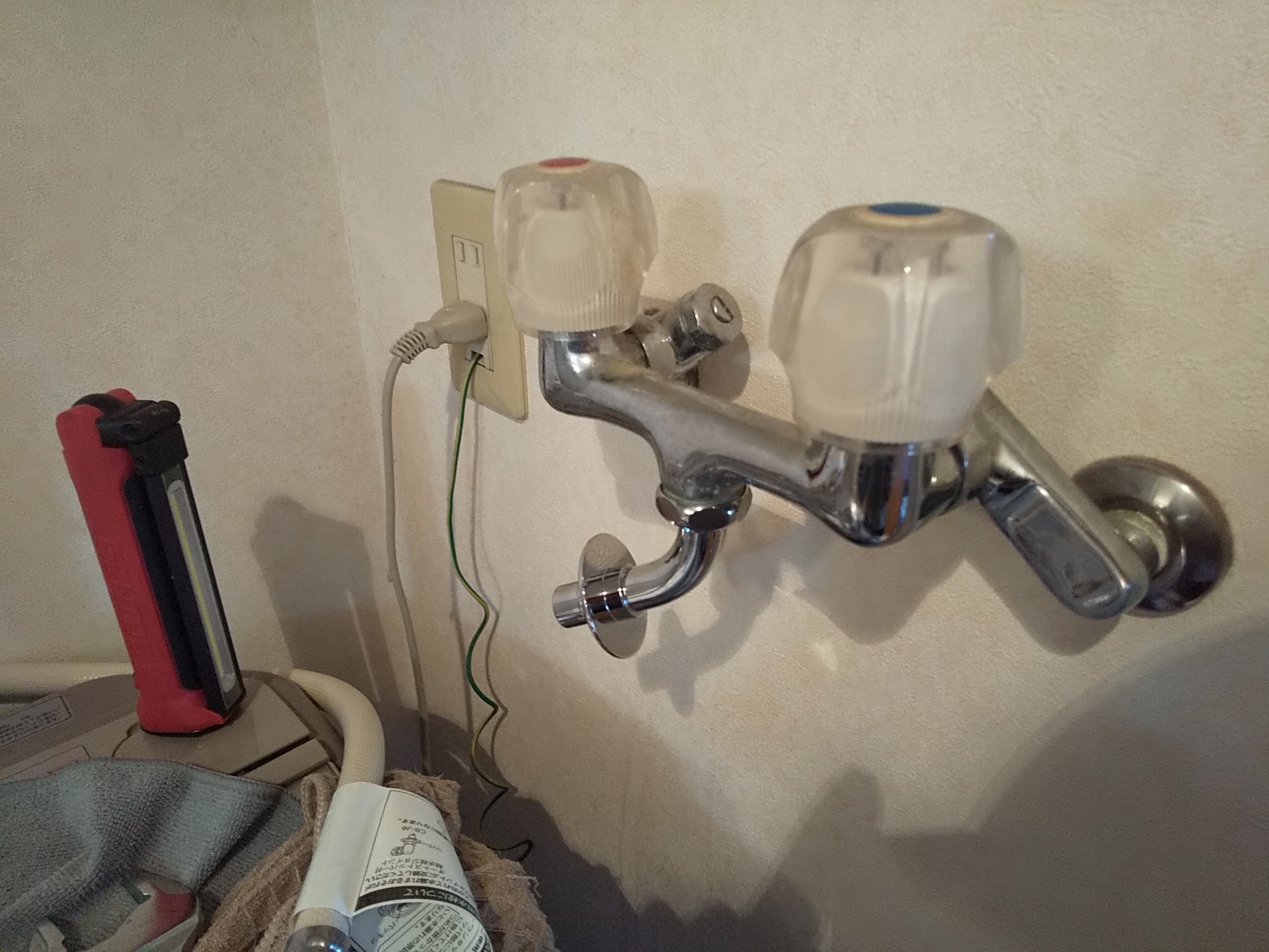 洗濯水栓の経年劣化による水漏れがあり