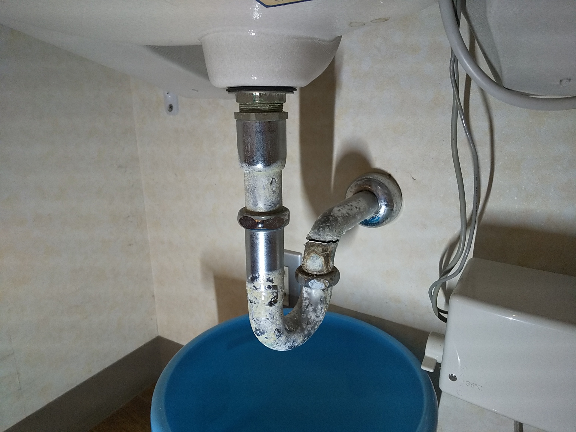 洗面排水金具の経年劣化により
