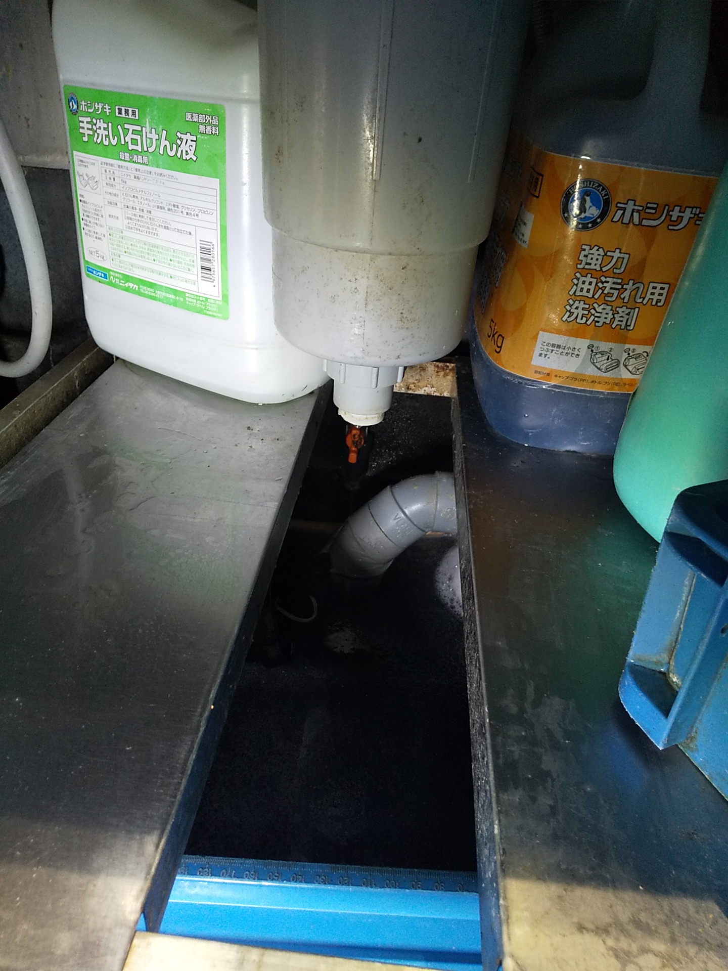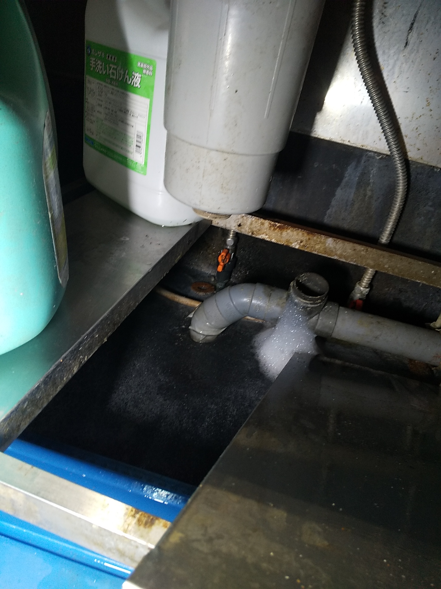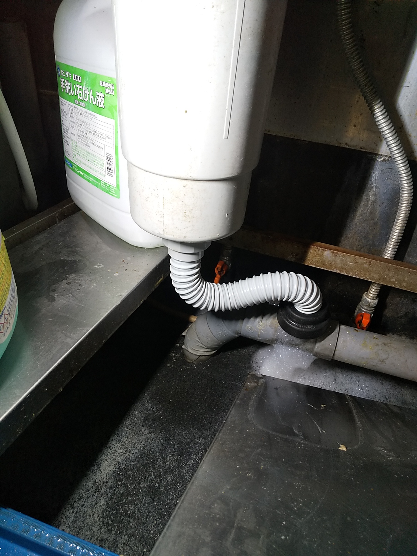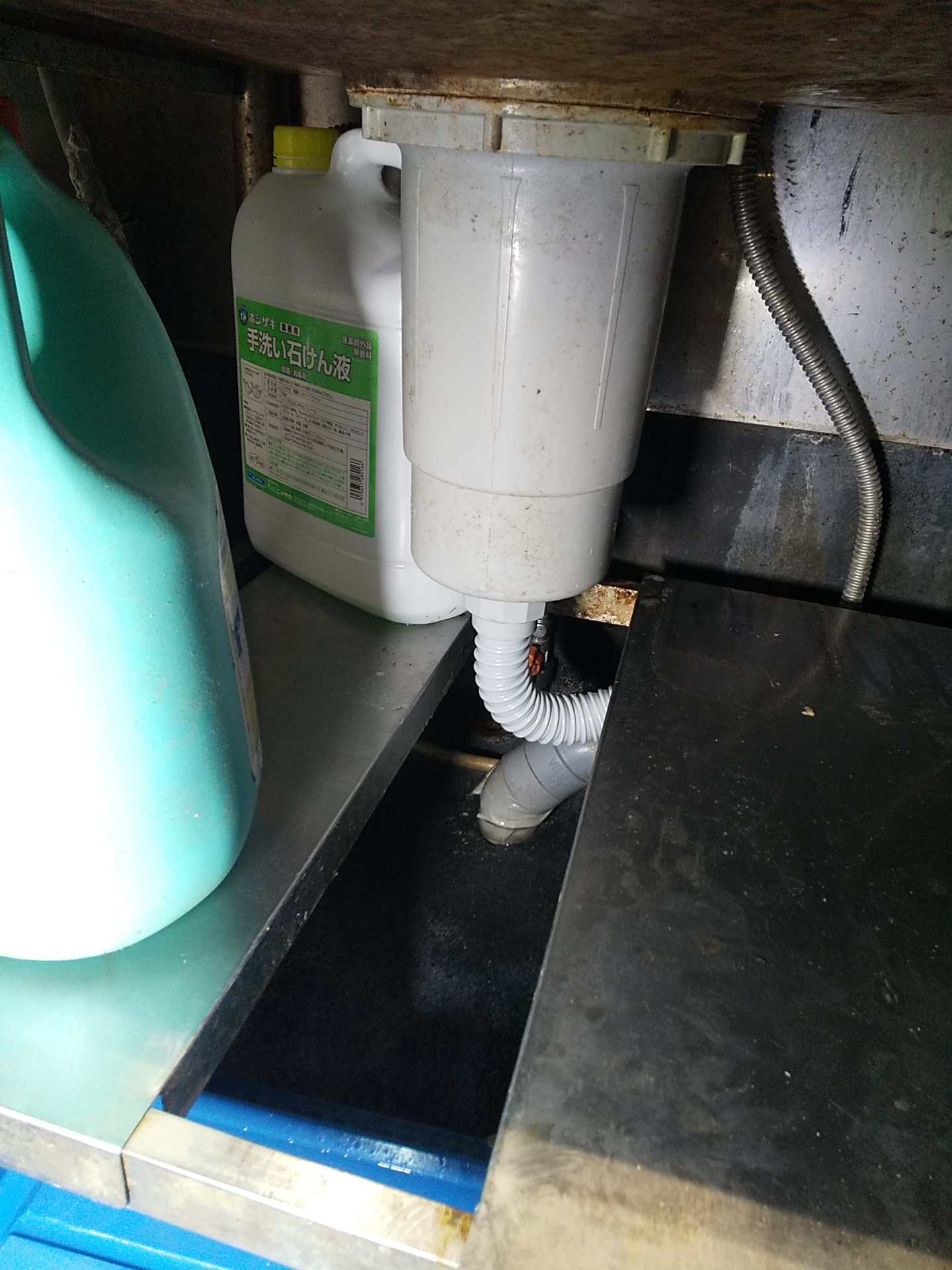 厨房内の流し台シンクの排水ホースの経年劣化により