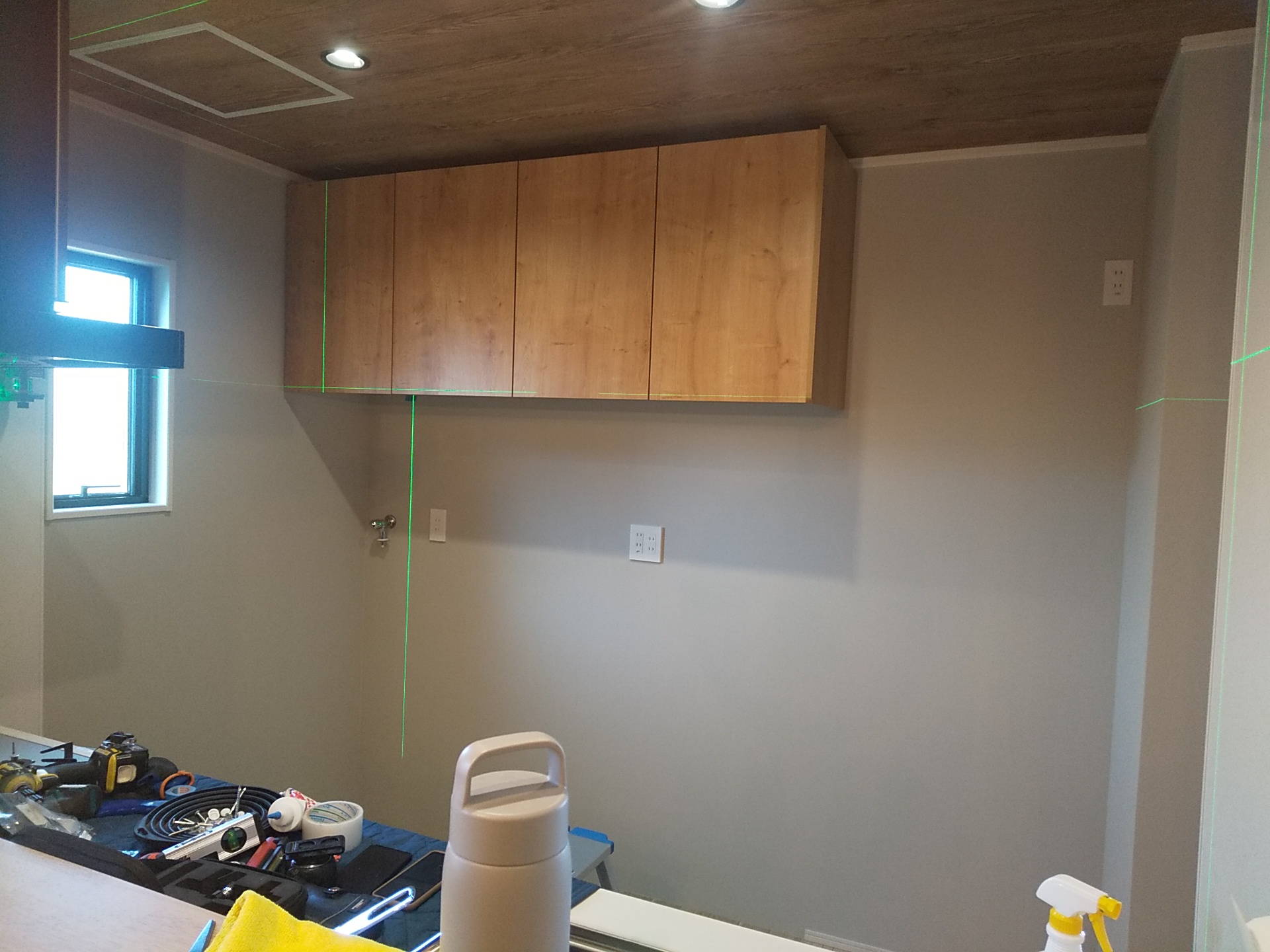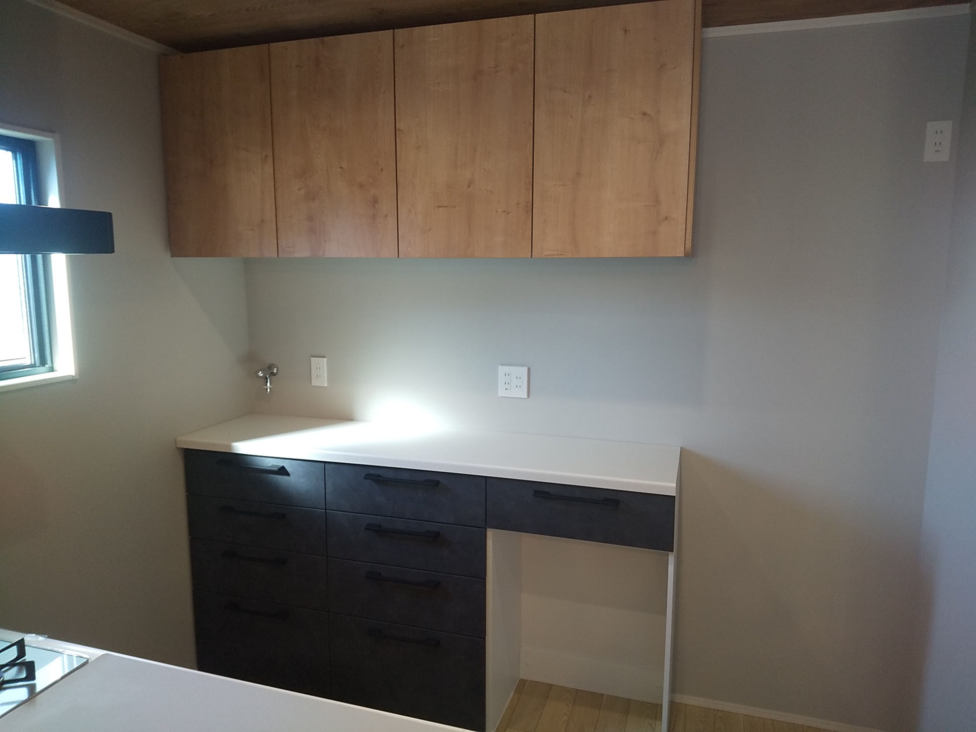 メモ ご要望により キッチンカップボードの新設工事を行った。 ※部材施主支給